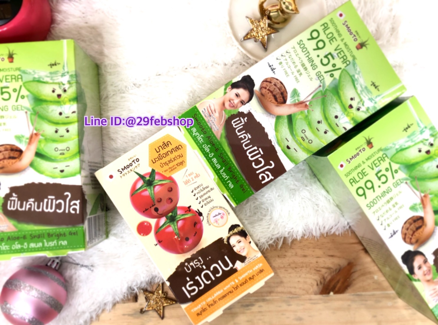 SMOOTO ผลิตภัณฑ์ที่ช่วยบำรุงให้ผิวสว่างกระจ่างใส ผลิตภัณฑ์เด่นคือ SMOOTO ALOE-E SNAIL BRIGHT GEL ตัวที่ใครๆ ก็คุ้น เพราะเป็นเจลที่บำรุงผิวหน้า และผิวกายได้ด้วย อีกตัวที่เด่นไม่แพ้กันคือ SMOOTO TOMATO ผลิตภัณฑ์สูตรลับหน้าเด็ก ! ที่ใช้สารสกัดจากน้ำมะเขือเทศค่ะ