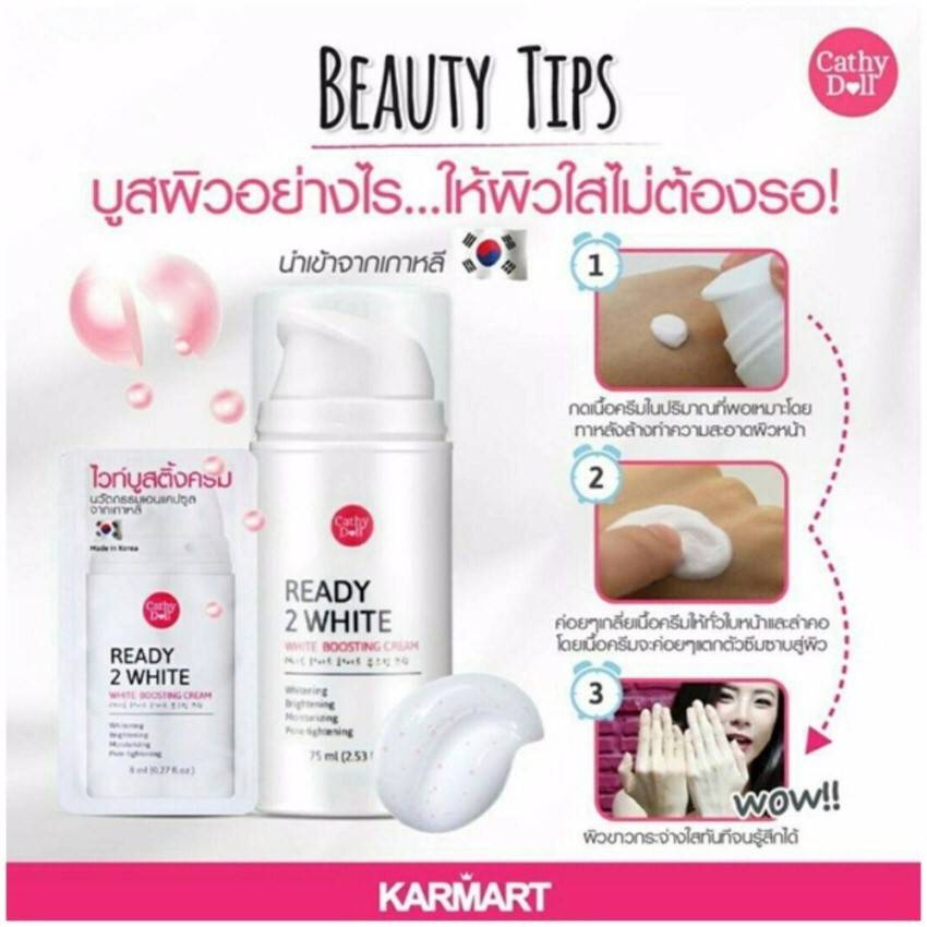 Cathy Doll Ready 2 White white Boosting Cream บูสผิวให้ดูใส White Boosting Cream มีเม็ดบีทส์ 3 ชั้น เพื่อบูสผิว ให้ขาวกระจ่างใส