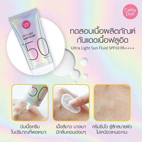 Cathy Doll Ultra Light SUN FLUID ไม่เป็นคราบขาว หน้าไม่ลอย เบา ซึมเข้าสู่ผิวง่าย ไม่เหนียวเหนอะหนะ