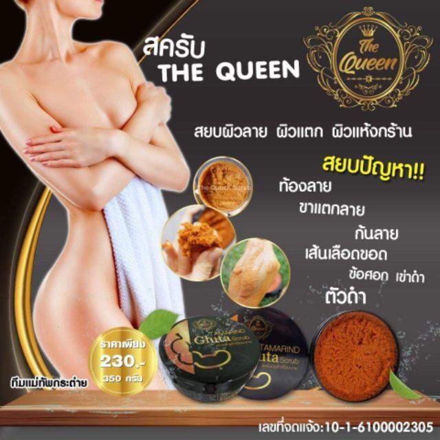 ขาวหลักร้อยด้วย สครับกลูต้าเนื้อมะขาม The Queen Tamarind Gluta Scrub ยิ่งขัดยิ่งขาว ลองแล้วจะรัก สครับขัดผิวที่ดีที่สุด เคล็ดลับผิวขาวใส ขัดผิวหน้าก็ได้ ขัดผิวตัวก็ดี ใช้ได้กับทุกสภาพผิว ผู้หญิง หรือผู้ชายก็สามารถใช้ได้ค่ะ ยิ่งขัดยิ่งขาว ช่วยให้ผิวกระจ่างใสขึ้น ผิวขาวขึ้นตั้งแต่ครั้งแรกที่ใช้ ไม่แสบ ไม่คันผิว ผิวไม่แห้ง ขัดสบายตัว กลิ่นหอมผ่อนคลาย ด้วย กลิ่นสมุนไพรแท้