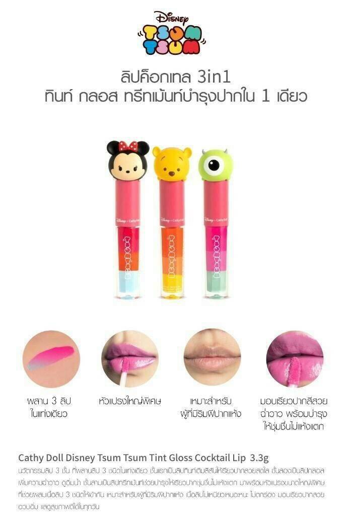 Cathy Doll Disney ลิปค็อกเทล 3 in 1 ที่รวมลิปทั้ง 3 แบบไว้ใน 1 เดียว ทั้งทิน, กลอส, และทรีทเม้นท์บำรุงค่ะ