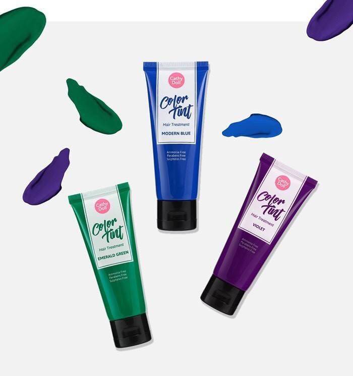 ทรีทเม้นท์เปลี่ยนสีผม เคที่ดอลล์ มอบผมนุ่มกลิ่นหอมด้วยค่ะ ย้อมสีติดดี โดยไม่ทำร้ายเส้นผมค่ะ Cathy Doll Color Tint มี 3 สีให้เลือกค่ะ 1. Emeral Green 2. Modern Blue 3. Violet