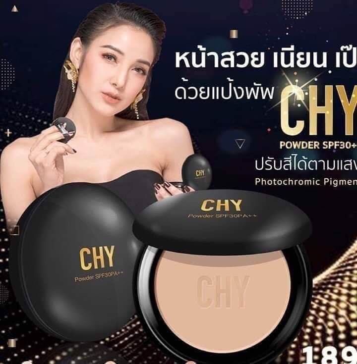 แป้ง CHY แป้งพัฟผสมรองพื้น มีให้เลือก 4 เบอร์ นวัฒกรรมสุดล้ำ กระจายแสงได้ดีค่ะ CHY กันน้ำ กันเหงื่อ ไม่เป็นคราบ ยิ่งเหงื่อออกหน้ายิ่งผ่องค่ะ CHY Powder SPF30 เปลี่ยนสีได้ตามแสงน่าลองมากๆ ค่ะ