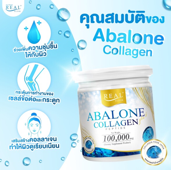 ❤ ผลิตภัณฑ์เสริมอาหาร Abalone Collagen Plus อบาโลน คอลลาเจน พลัส คอลลาเจนหอยเป่าฮื้อ เพิ่มความชุ่มชื่น ให้ผิวนุ่ม เปล่งปลั่ง ลดเลือนริ้วรอย ด้วยอบาโลนผสมคอลลาเจนเปปไทด์ แตกต่างจากคอลลาเจนทั่วไป เพราะประสิทธิภาพ ได้ดีขึ้น ด้วยหอยเป่าฮื้อ มีกรดไฮยาลูรอนธรรมชาติเพื่อผิวนุ่มฟู เด้ง เต่งตึง ช่วยกักเก็บน้ำในผิว ลดริ้วรอยร่องลึก ให้ผิวเฟิร์ม กระชับ อิ่มน้ำ พร้อมคอนดรอยตินธรรมชาติ ช่วยปรับสมดุลเซลล์ กระดูกอ่อน ข้อต่อ สมดุลการสร้างเซลล์ และการสลายตัวของกระดูกอ่อน ข้อต่อ สมดุลการสร้างเซลล์ ลดอาการปวดอักเสบหัวเข่า